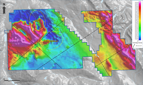 A 700 line-km airborne magnetics survey was completed during the 2025 field season providing detailed coverage of the JJB property.